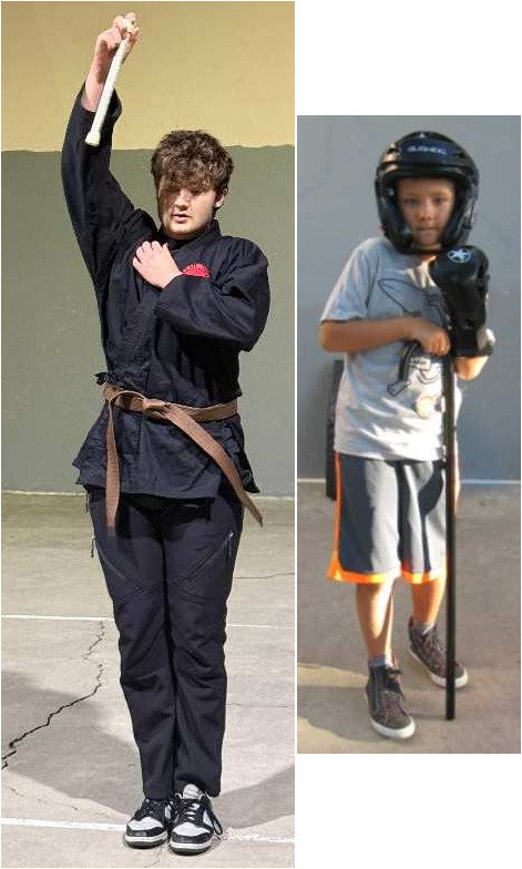 Demonstrating “KIA Short Stick” above and his fighting position below.
